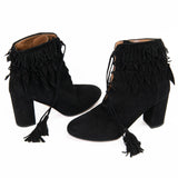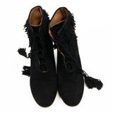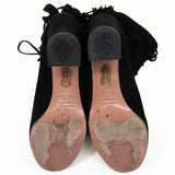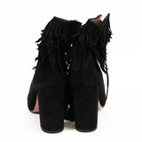 Aquazzura Woodstock Black Suede Fringe Booties Size 37
