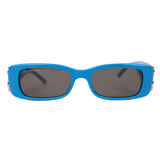 Make a bold statement with these Balenciaga Blue Mirror B Sunglasses, featuring a sleek rectangular silhouette crafted from high-quality acetate in a vibrant blue finish. The frames showcase Balenciaga’s signature “B” logo in silver hardware at the temples, adding a touch of modern luxury. Designed with mirrored gray lenses that provide full UV protection, these sunglasses blend cutting-edge style with functionality. Perfect for elevating any look, from streetwear to chic resort attire.