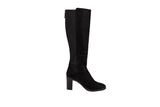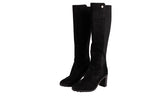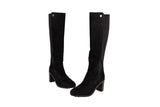 These Tory Burch Sullivan boots are crafted from smooth black leather with stretch panel construction for a sleek, comfortable fit. Featuring a classic almond toe and a sturdy block heel, they offer a refined yet practical silhouette suitable for everyday wear. Timeless and versatile, these boots reflect Tory Burch’s signature balance of polish and functionality.