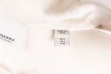 This Burberry corset-style dress features a striking two-tone design with a crisp white upper bodice layered over a structured black corset silhouette. The piece blends tailored elegance with a modern edge, finished with long sleeves, button-front detailing, and a softly pleated skirt. A refined statement dress suitable for elevated daytime styling or evening wear.