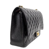 The Chanel Maxi Classic Flap Bag in Black Caviar Leather with Gold Hardware is the ultimate symbol of timeless luxury. Crafted from durable diamond-quilted caviar leather, this iconic piece features the signature front flap with interlocking CC turn-lock closure and elegant leather-threaded chain straps that can be worn on the shoulder or crossbody.