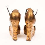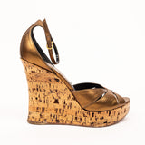 These Christian Dior Cork Wedge Sandals combine bronzed metallic leather with a sculptural cork platform for an elevated, summery statement heel. The crossover leather toe, ankle strap, and signature Dior silhouette create a bold and flattering shape perfect for warm-weather styling, events, or vacation looks. Lightweight despite the height, they offer stability and comfort with every step.