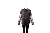This Dolce & Gabbana blouse is crafted in lightweight black silk with a white polka dot pattern. Designed with a classic button-front silhouette, pointed collar, and sheer long sleeves, it delivers an elegant, feminine look with signature Italian tailoring. A versatile piece that transitions seamlessly from polished daytime wear to elevated evening styling.