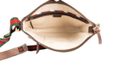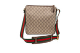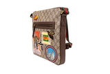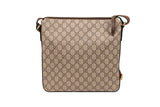 This Gucci Courier messenger bag is crafted from beige GG Supreme coated canvas and finished with multicolor appliqué patches, embroidery, and printed motifs. Designed with an adjustable web shoulder strap, exterior zip pocket, and slim profile, this piece merges collectible artistry with everyday function. A standout crossbody that embodies Gucci’s bold, eclectic styling.
