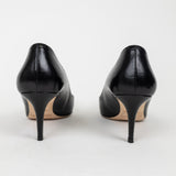These Jimmy Choo black kid leather heels embody timeless elegance with a sleek, classic silhouette. Crafted from soft, high-quality leather, they feature a pointed toe and moderate heel height—perfect for both professional wear and evening occasions. The supple leather lining and smooth finish highlight Jimmy Choo’s signature craftsmanship and sophistication.