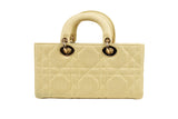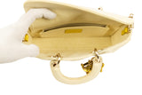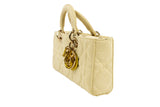 This Christian Dior D-Joy bag is crafted from structured denim with a refined quilted finish and signature charm detailing. Designed as a modern reinterpretation of the Lady Dior silhouette, it offers a sophisticated top-handle style with timeless elegance suitable for both day and evening wear.