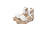 These Hermès wedge sandals are crafted from smooth leather and finished with a natural espadrille sole. Elegant and comfortable, they are ideal for warm-weather styling.