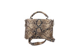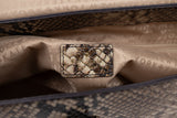 This Kate Spade Nadine handbag is crafted in snakeskin-embossed leather with a structured silhouette that blends neutral tones for versatile styling. Elegant yet practical, it offers a refined statement suitable for both day and evening wear.