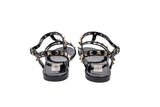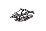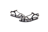 These Valentino Rockstud sandals are crafted in glossy jelly material and accented with signature pyramid studs for a modern edge. Designed with a flat sole, they offer both comfort and iconic Valentino styling.