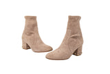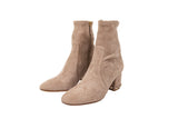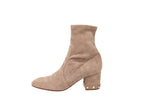 These Valentino booties are crafted from supple suede and feature a sleek ankle-height silhouette with a block heel accented by signature stud detailing. A refined yet modern design, they offer everyday versatility with elevated luxury appeal.