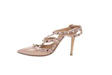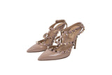 These Valentino Rockstud slingback heels are crafted from glossy patent leather and finished with gold-tone pyramid studs. A timeless silhouette with elevated detailing, they are ideal for both formal and evening wear.