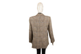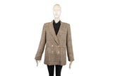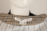 This Veronica Beard top features a structured silhouette with pinstripe detailing and tweed accents, blending classic tailoring with modern feminine design. An elevated wardrobe staple suitable for both workwear and refined casual styling.