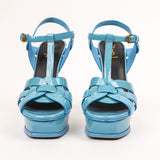 Saint Laurent Blue Patent Leather Tribute Platform Sandals Size 41