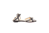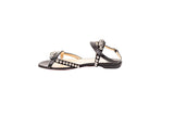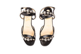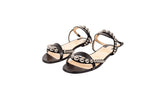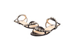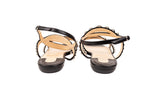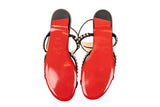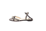 These Christian Louboutin Galeria sandals feature a sleek black leather construction accented with polished silver-tone stud detailing. Designed with a minimalist ankle-strap silhouette and signature red lacquered soles, they deliver refined elegance with a modern edge suitable for day-to-evening wear.