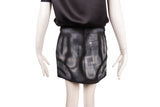 This Givenchy mini skirt features a textured black fabric accented with subtle graffiti-inspired detailing and structured paneling. Bold yet refined, it showcases the brand’s edgy aesthetic while maintaining a wearable, fashion-forward silhouette.