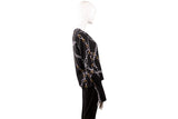 Louis Vuitton Black White Gold Silk Chainline Blouse Size 36