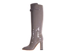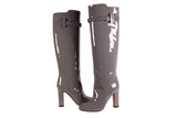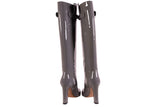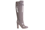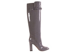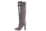 Valentino Gray Patent Leather Tall Boots with Chain Detail Size 37.5
