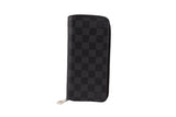 This Louis Vuitton Brazza wallet is crafted in the brand’s signature Damier Graphite coated canvas in black and gray tones, offering a sleek, masculine aesthetic with a refined finish. Designed with a tall, slim silhouette, it features a full-length bill compartment, card slots, and additional interior pockets for organized everyday carry. The structured canvas construction provides durability while maintaining a polished luxury look suitable for daily use.