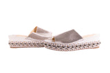 Material: Metallic mesh upper with leather lining and decorative wedge sole